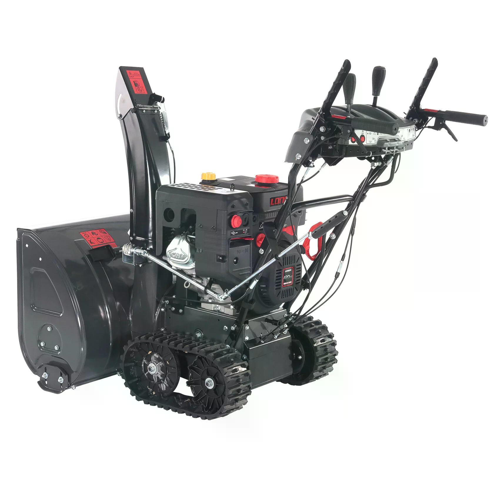 Модель EVOline SBG760TLE имеет богатую стандартную комплектацию: LED-фару (светодиодная), подогрев рукояток управления, легкий запуск двигателя от розетки 220В, а также гусеницы для передвижения по неровным участкам.